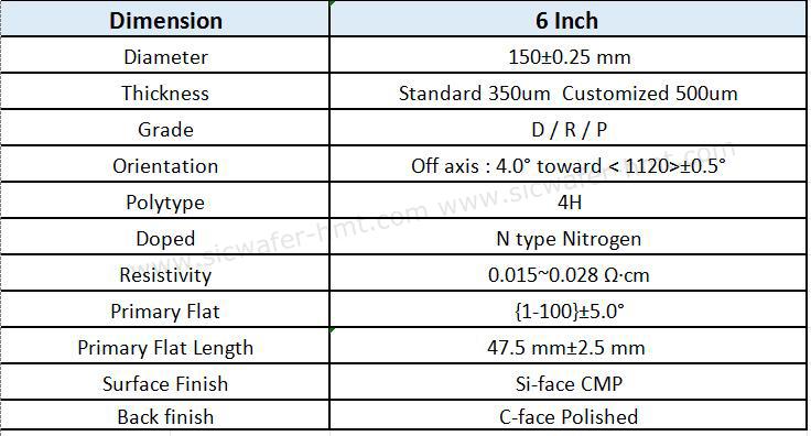 6 inch SiC Substrate Basic Parameters